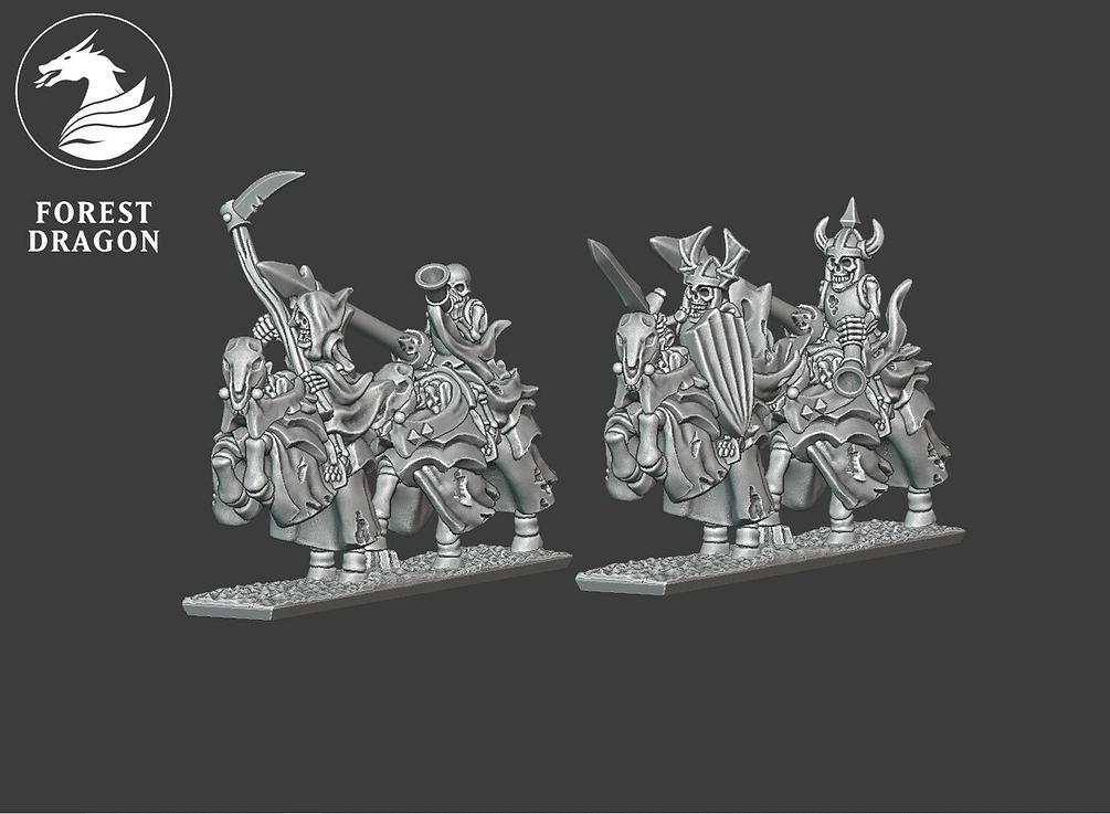 10mm Scale Vampires Skeleton Knight Unit for Warmaster or other small scale Fantasy Tabletop Wargames. You are purchasing 3D prints, not the STLs. Authorized Merchant for printing ForestDragon sculpts.